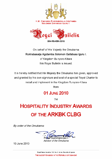 All decisions of the “Hospitality Industry Awards Board of Trustees of ARKBK CLBG” are based solely on whether the nominee demonstrates a commitment to excellence in luxury and service within its category and classification.